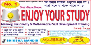 Now get a better score in exams with “ENJOY YOUR STUDY” 2-days Practical Workshop for Students. Improve Child’s Concentration & Memory Power in Study. Make your Child more Confident & Commited in Exams. Improve Reading & Revision Speed with Scientific Study Techniques.